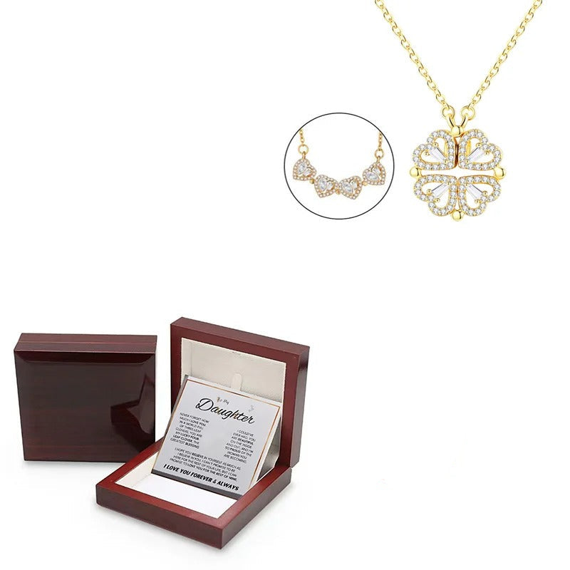 The four-leaf clover pendant represents luck, love, faith, and hope—four timeless qualities every parent wishes for their daughter’s life. Crafted with sparkling stones and a polished gold-tone finish, this necklace offers elegance and durability. The adjustable chain ensures a comfortable and personalized fit for everyday wear. Presented in a beautiful gift box, it’s ready to give the moment it arrives.